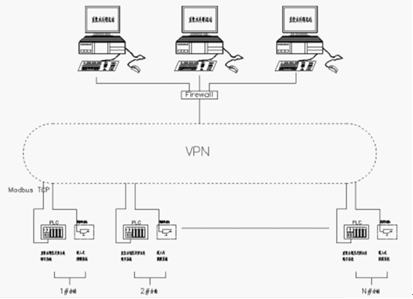 運(yùn)用送水管網(wǎng)增壓泵站遠(yuǎn)程控制平臺,對于泵站進(jìn)行集中化遠(yuǎn)程管理和控制。泵站遠(yuǎn)程控制平臺,本來都由物業(yè)管理,現(xiàn)在收回歸自來水公司集中統(tǒng)一管理,可以從上位機(jī)遠(yuǎn)程控制管理。原理圖如下: