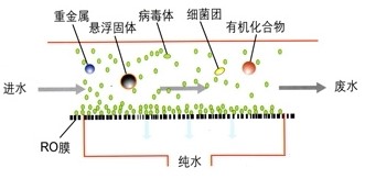 由于反滲透膜的膜孔徑非常小,因此能夠有效地去除水中的溶解鹽類、膠體、微生活、有機(jī)物等。